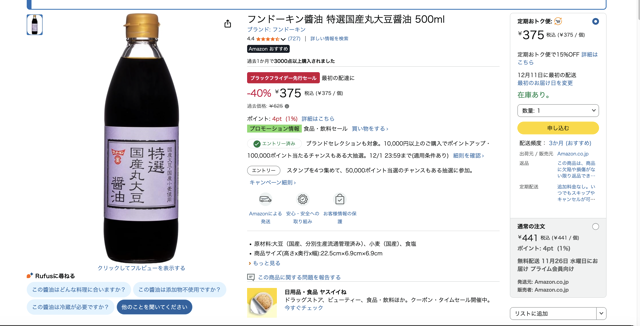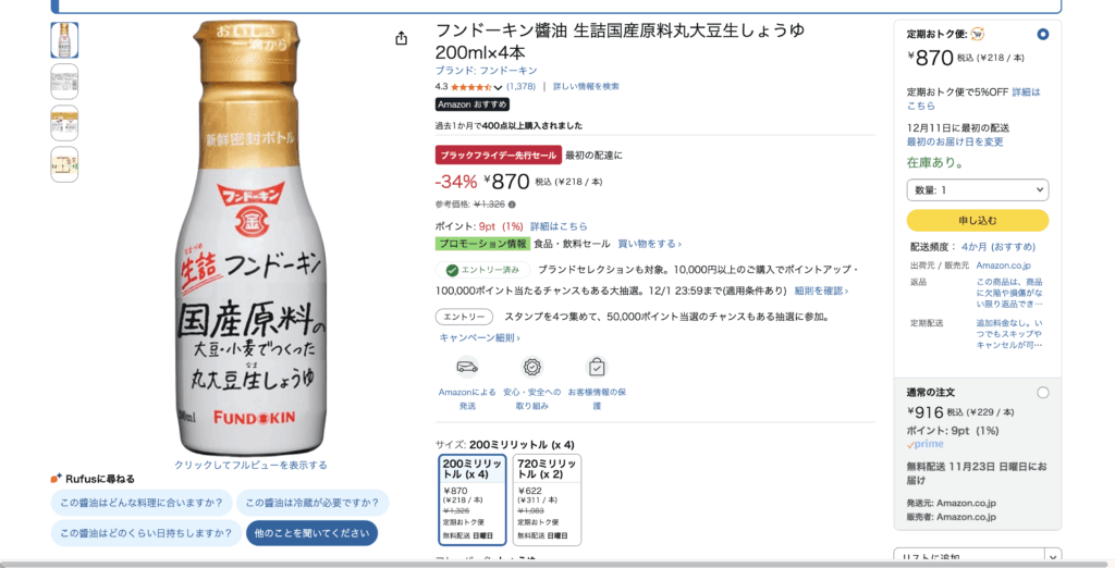 この価格はなかなか見かけないので、お得な無添加醤油をお探しの方やフンドーキン好きの方はゲットするチャンスではないでしょうか…!