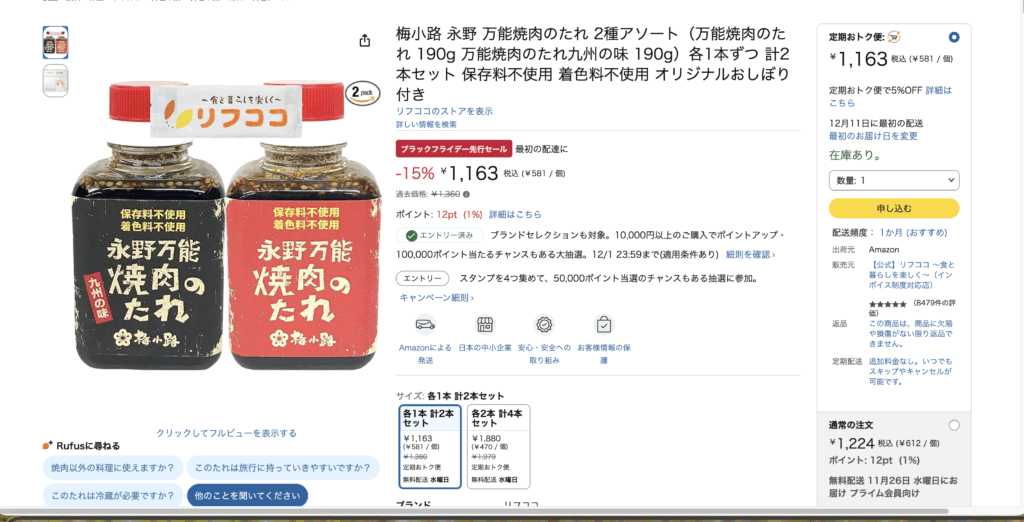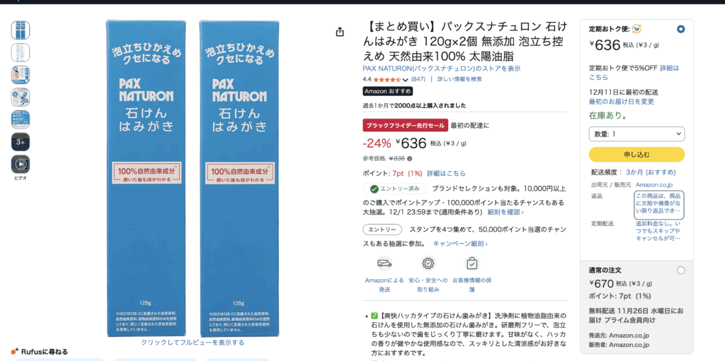 2025年Amazonブラックフライデーでお得になっているおすすめ無添加食品・日用品は次のとおりです。