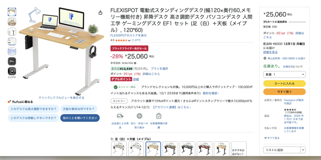 最後に紹介するのは私の健康生活に欠かせない…「FLEXISPOT 電動式スタンディングデスク」です!