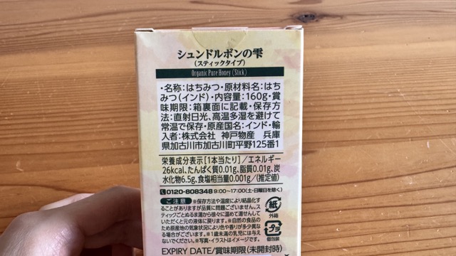 以前購入して美味しかったオーガニックはちみつ「シュンドルボンの雫」にスティックタイプが出ていたので、今回試してみることに🍯