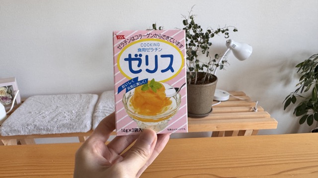 ゼラチンがあると、コーヒーゼリーや果物ゼリー、牛乳プリン的なものも簡単に作れて結構便利なので、我が家ではストックしてあるもののひとつです。