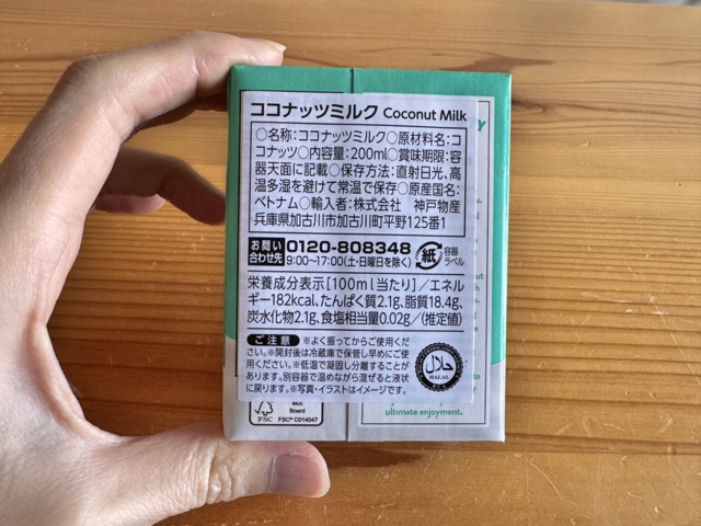 初めて発見して、パッケージも可愛いし、無添加だし!と購入してみたのが「ココナッツミルク」!