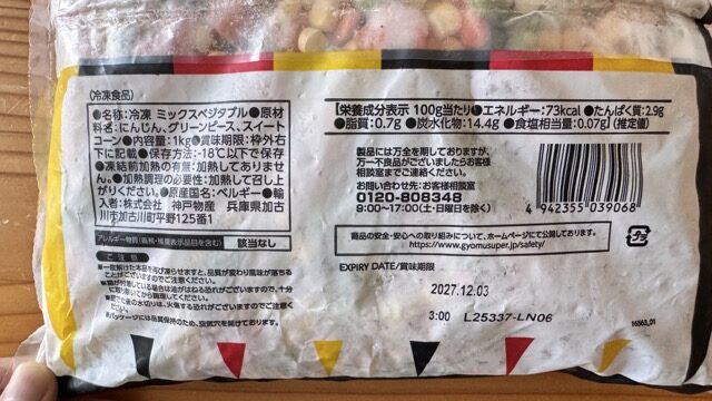 1kgのたっぷりサイズ&ベルギー産でこのお値段は嬉しく、3種の野菜の栄養バランスも良い感じです💁♀️