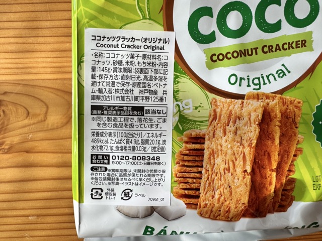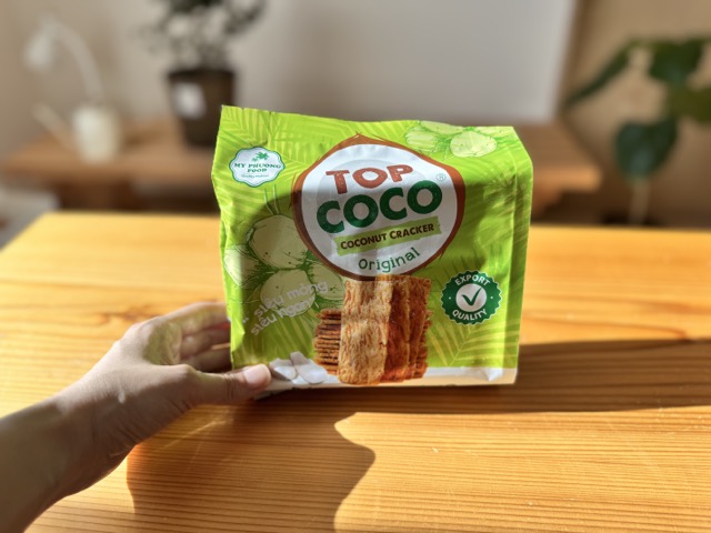 食べてみると、ほんのりしたココナッツの甘さとごまの香ばしさ、そしてサクサクの軽い食感で美味しいです🙆♀️クラッカーとは異なりココナッツミルクや卵も使われているので、クラッカーより優しさを感じるような…。ココナッツのお菓子の違いを比較してみるのも楽しいかもしれません🤭
