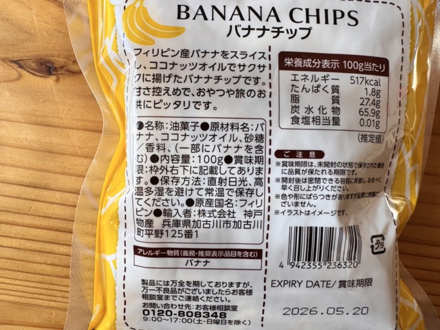 業務スーパー無添加おやつ⑤バナナチップ 100g 98円