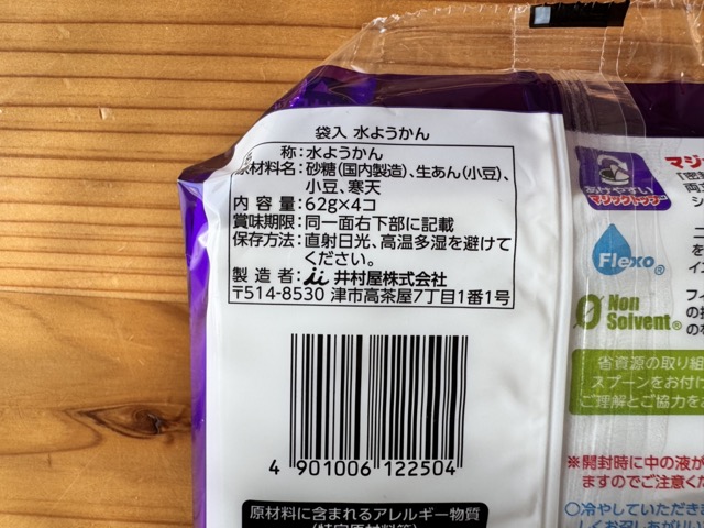 業務スーパー無添加おやつ11. 井村屋 水羊羹 62g×4個 238円