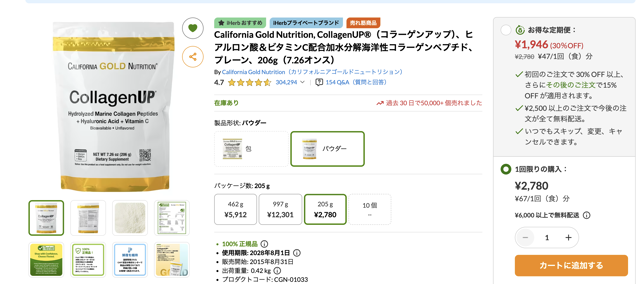 7つ目に紹介するiHerbで買って良かった商品は「California Gold Nutrition, コラーゲンアップ」です。