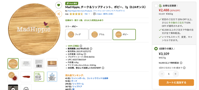10個目に紹介するiHerbのベストバイ商品は「Mad Hippie, チーク&リップティント」です。
