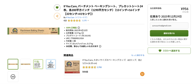 11. If You Care, パーチメント ベーキングシート 24枚 956円