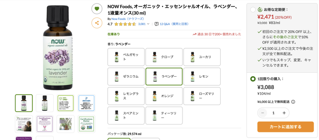 最後に紹介するのが「 NOW Foods, オーガニック・エッセンシャルオイル、ラベンダー」です。