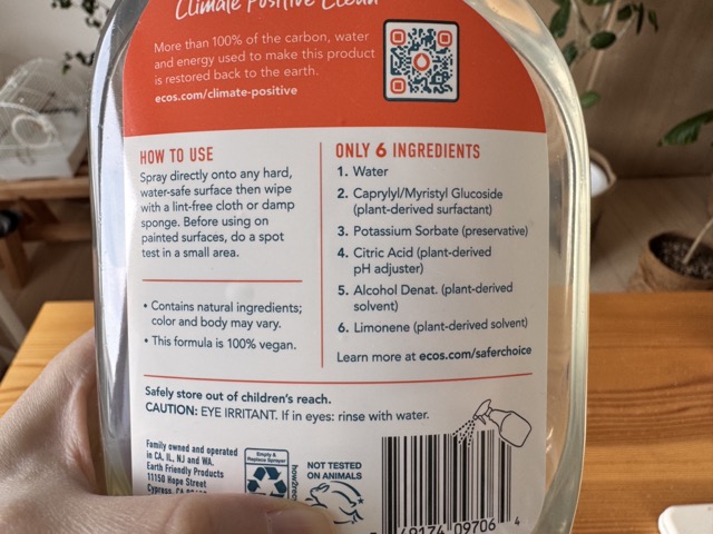 「ECOS オールパーパス クリーナー」は、環境にも人にも優しい洗剤だなぁと感じてリピートしています。
