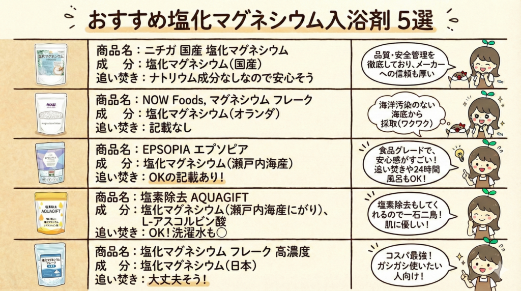 5種を徹底比較!自分に合う塩化マグネシウムベストはこれ!